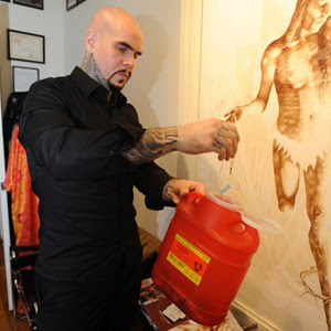 Castiglia (30) said in an interview this week that this is the first time he used the medium of blood that was triggered by "the need to connect with his work in the most intimate level."